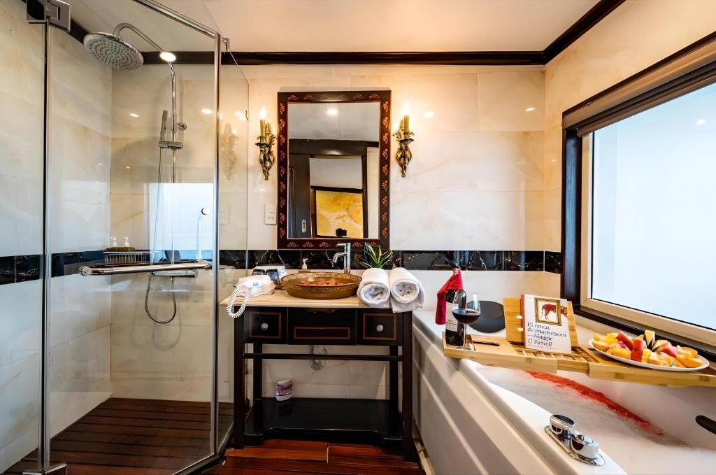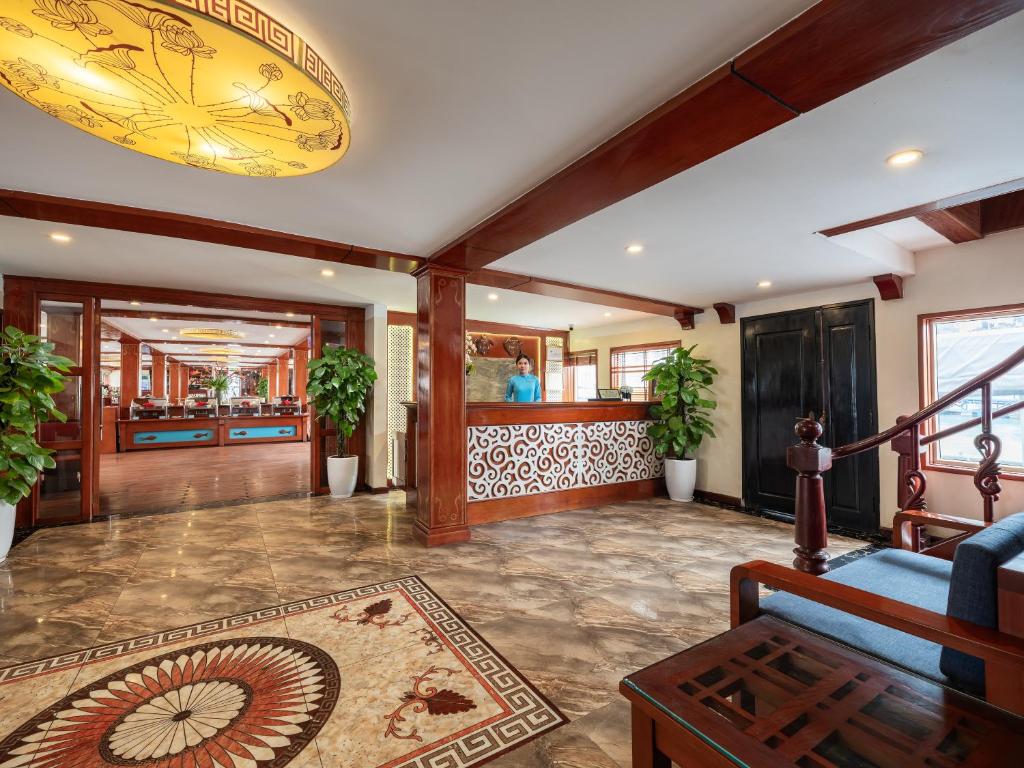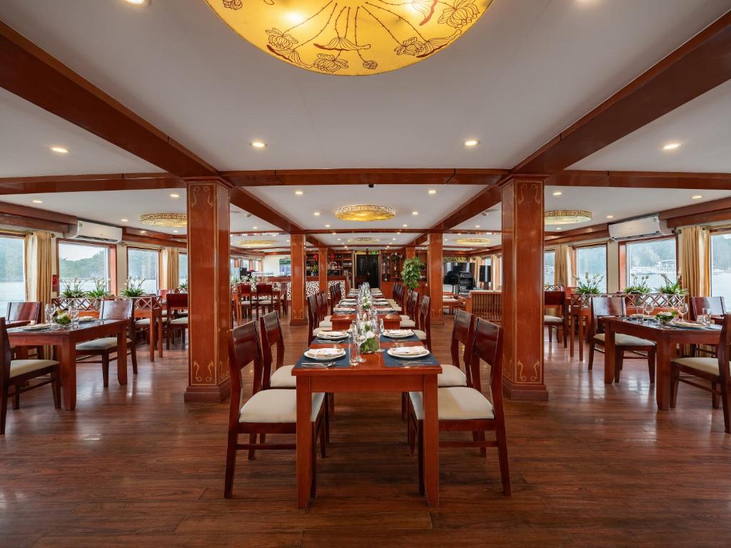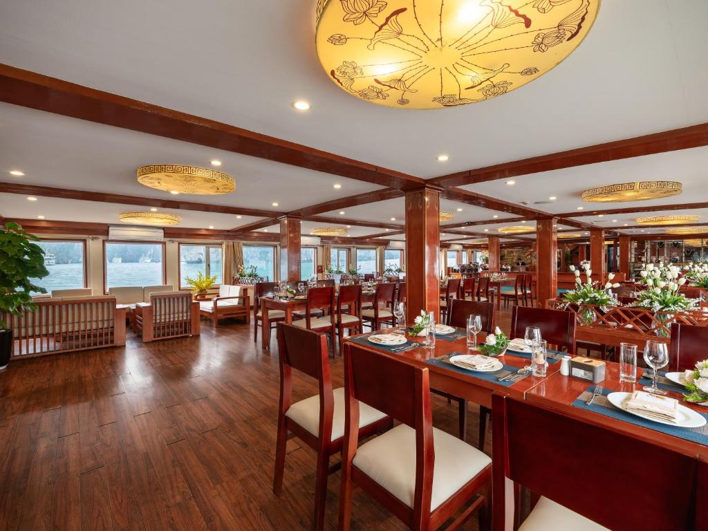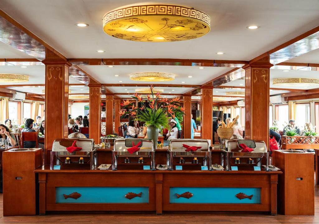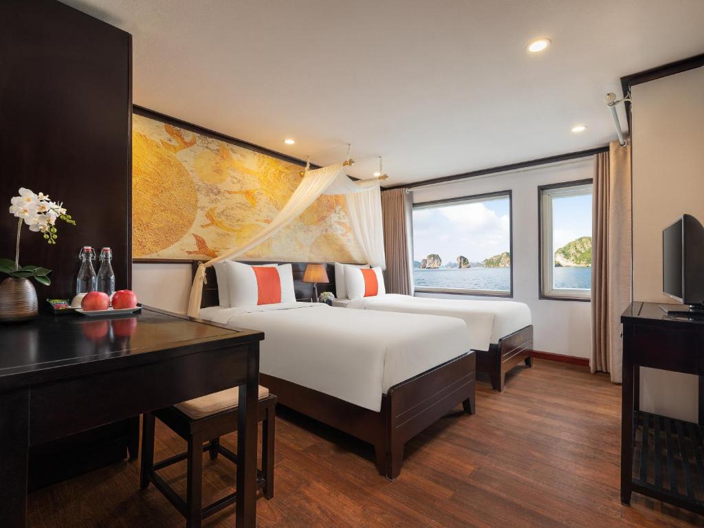 12:00 Upon boarding Amanda Cruise, our crew welcomes you with a refreshing drink and cold towel before checking into your cabin.Enjoy your lunch at our luxurious restaurant on board while the vessel cruises toward Sung Sot Cave and Titop Island.