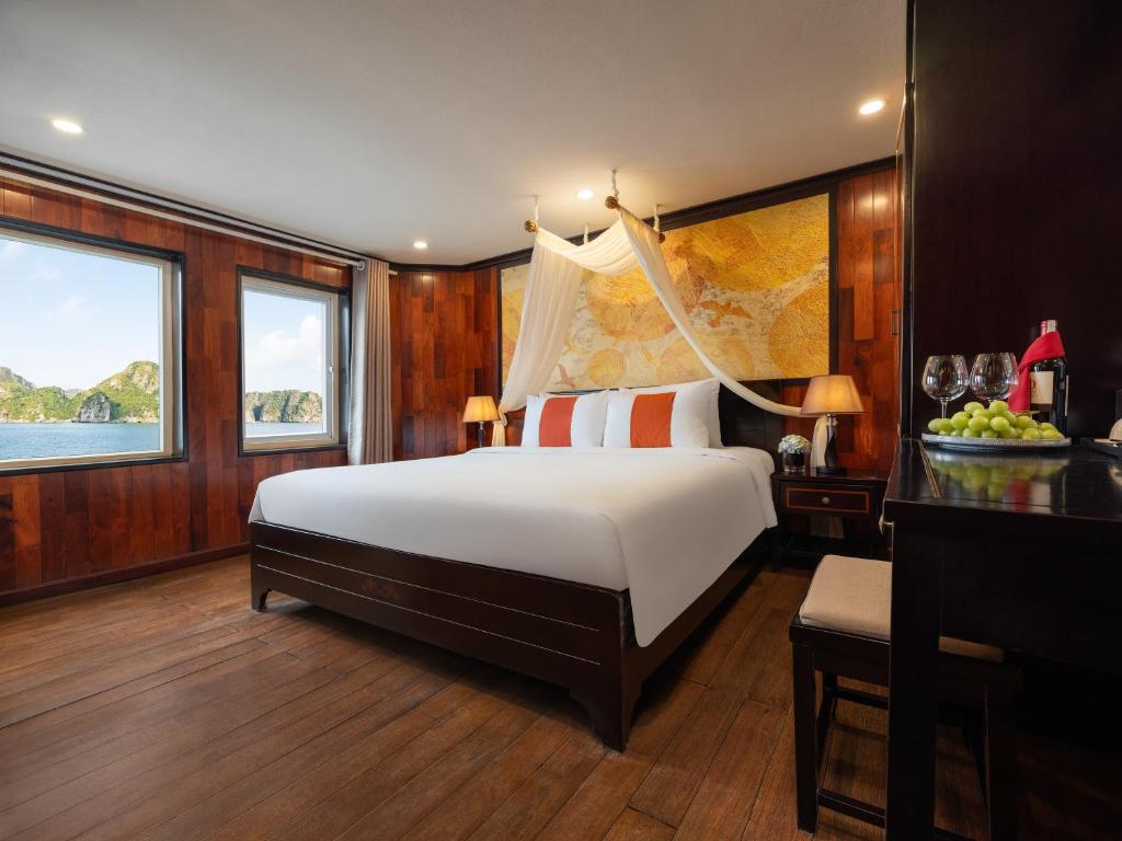 16:00 Amanda Cruise will take you to visit Sung Sot Cave, the largest and most magnificent cave in Halong Bay, known for its impressive stala