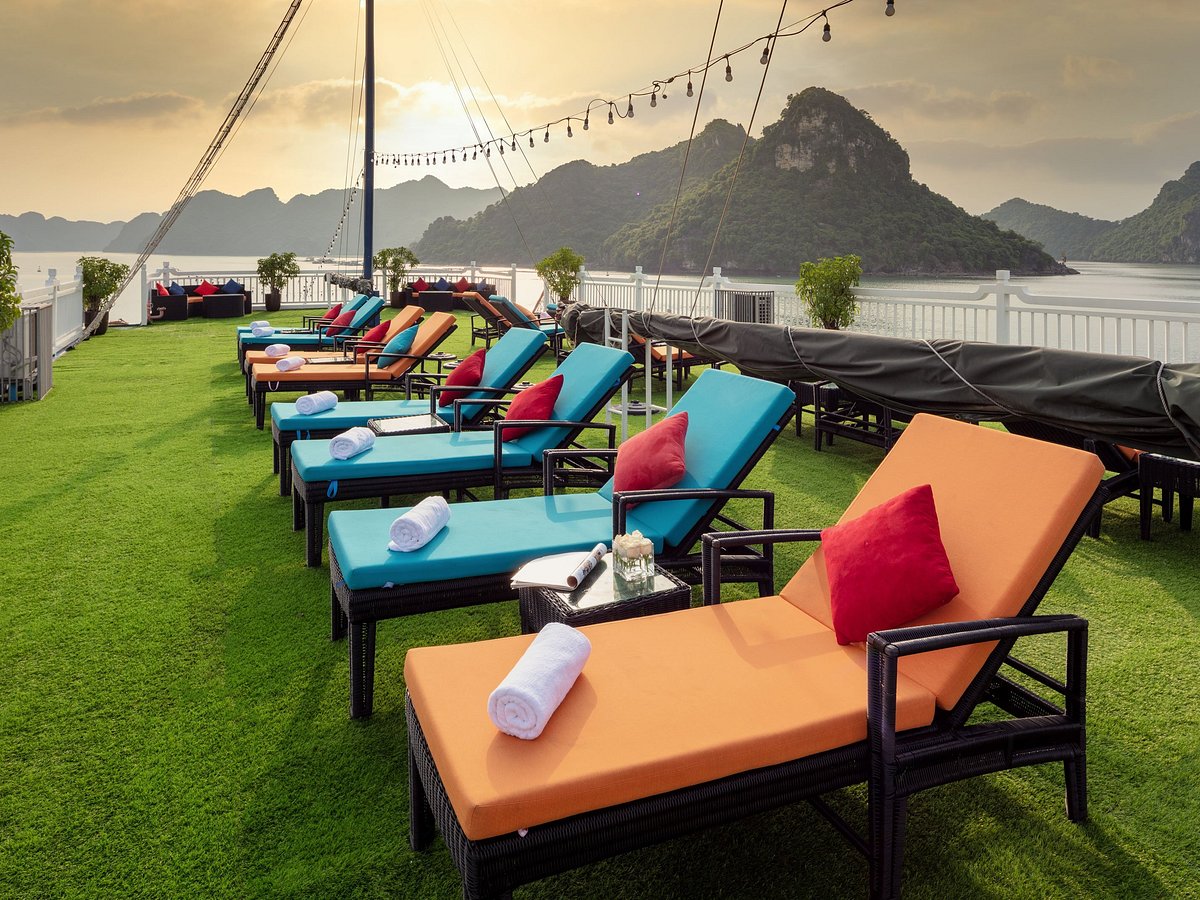 Back on Aurora, Cruise, where guests can enjoy,relax with sunset over Lan Ha Bay or experience therapeutic massage services right on board.