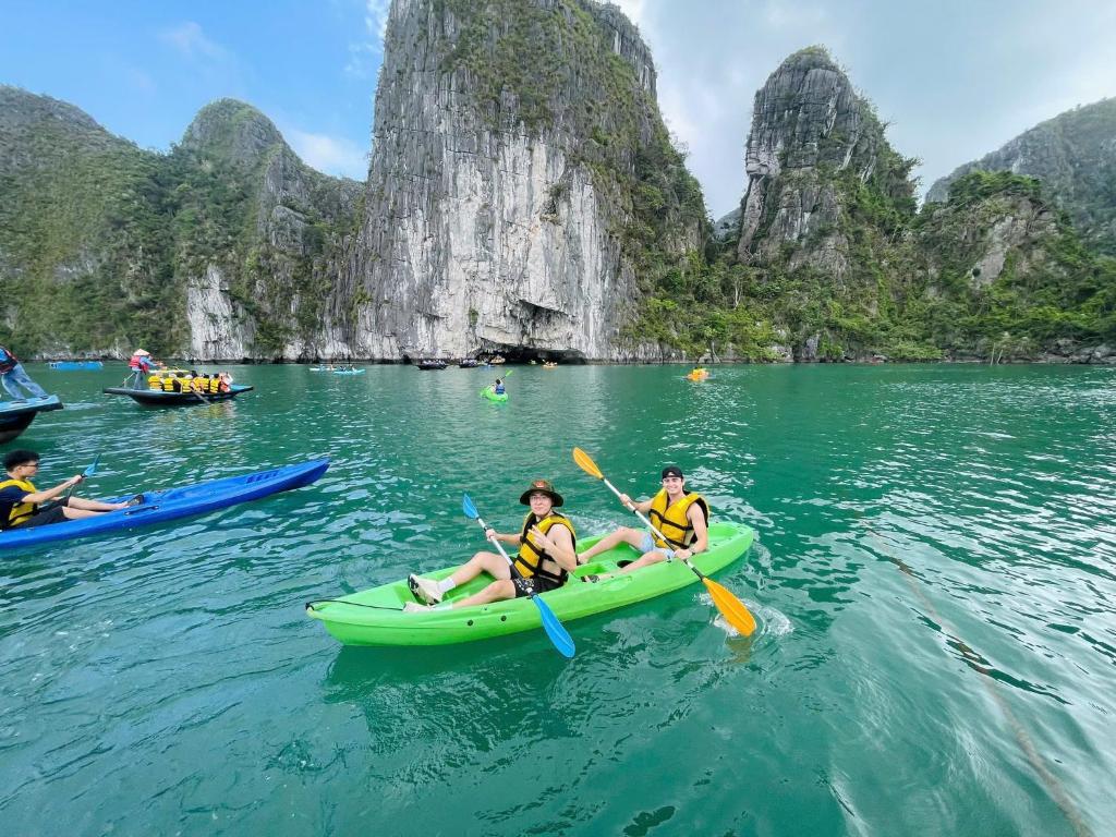 15:00: The cruise will take you to “Tra Bau” to enjoy kayaking and swimming. This is famous filming location for he movie kong:Skull Island in Quang Ninh in 2018.