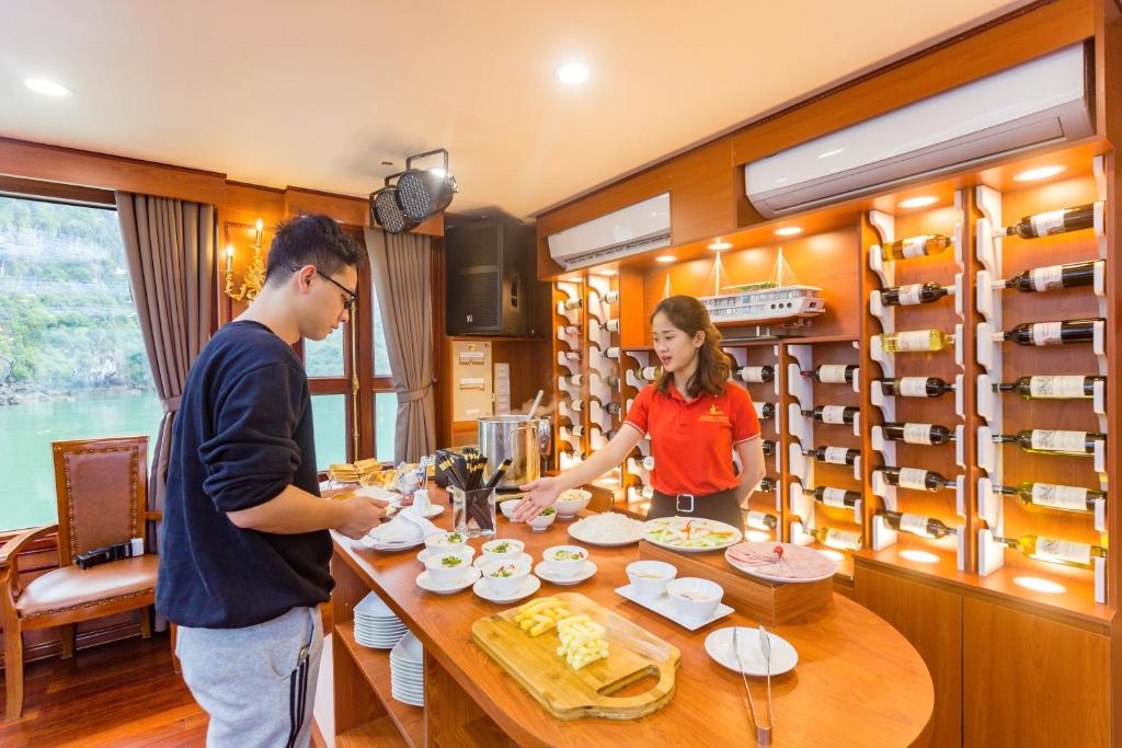 13:15: Have lunch while cruising in the magnificent Ha Long Bay, admiring the fascinating nature,then anchor at Lan Ha Bay area