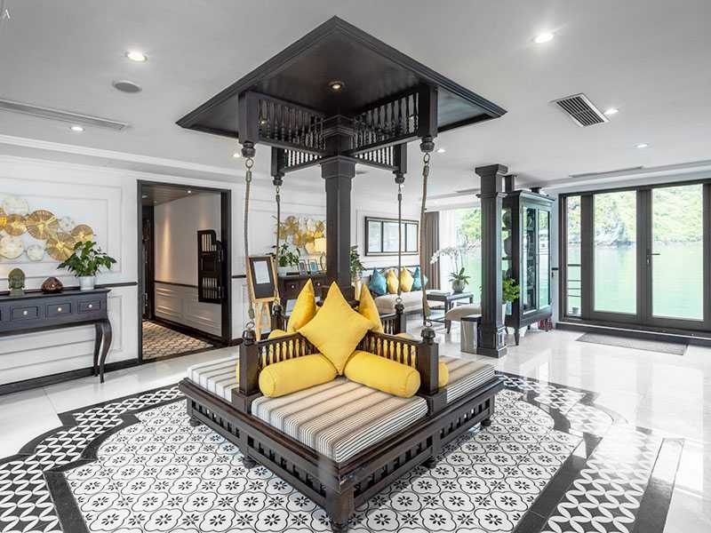 20:30: Immersing yourself in music, chill at spirit of the sea lounge, try karaoke with your family and friends at sea melody theatre, play exciting board games at cigar & poker room,catch the fresh squid or simply take a rest and watch night falling on ha long – lan ha bay from the balcony in your cabin.