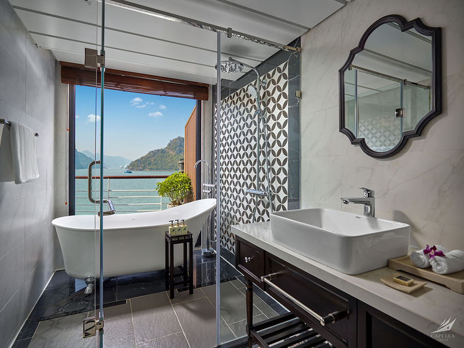 15:15-17:00: Cruise anchors at frog Lagoon area for outdoor activities. Access to capella’s high – grade entertainment facilities for loads of fun water activities. You can choose to rejoice in infinity oasis pool and jacuzzi,experience the thrills with inflatable water slide,swim in the green emerald water,kayaking /try SUP around the beautiful landscape of Lan Ha Bay, or try a mini-Golf on the top deck.