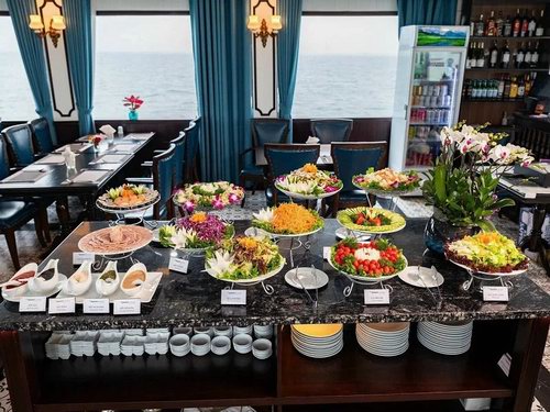 11:15: Enjoy a delightful lunch at the 5 – star restaurant on Leona Cruise as you glide past thousands of majestic limestone karsts in the heart of the World Heritage Site.