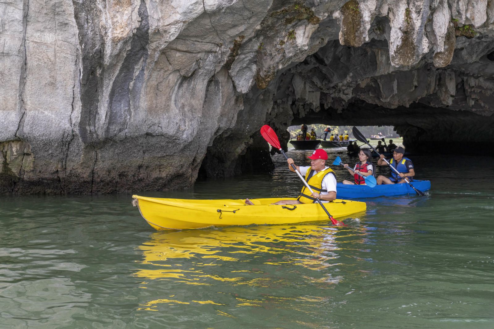 12:15: Explore the tranquil Luon Cave with a unique arch, shaped structure,featuring ancient rock formations and home to golden monkeys. Kayak/bamboo boat rides are must try activities at this ideal destination.