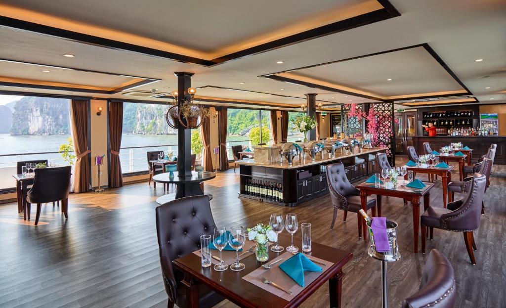 21:00 - 22:00 : Enjoy the nightlife of the bay from the deck. Immerse yourself in music. Taste some cocktail at the bar. Otherwise, you can go for the squid fishing with the sailors or simply relax in the room and watch Ha Long Bay from the balcony.