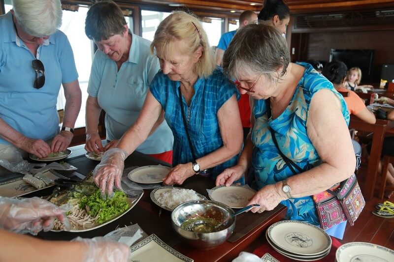 11:00: Enjoy a traditional Vietnamese lunch on boat.