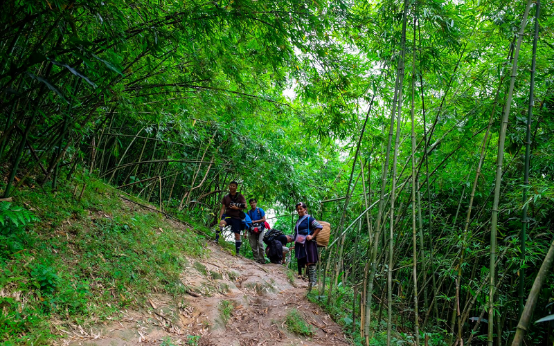 9.30 We will trek on a hilly trail around 3 km throught Bamboo forest to Giang Ta Chai village where you can see the Red dao minority people. You can make a stop at a waterfall for taking the photos. Have soft break at rattan bridge –the oldest rattan bridge in Sapa. Visit some house and continue to go to Su Pan village . Have lunch at the village