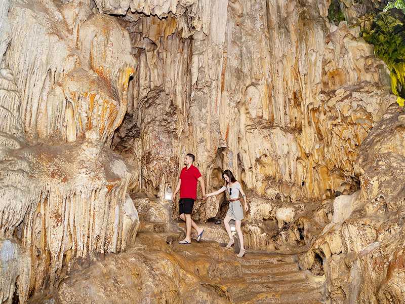 07:30: Exploring Sung Sot cave. This is one of the largest and most beautiful caves in Ha Long Bay. The cave has some unique rock formations which couldn’t be found anywhere else. The path to the mouth of sung sot cave is under a canopy of leaves. Walking through steep stone steps, tourists may have the feeling of climbing on mountains and experience the excitement as if they are stepping to the sky.