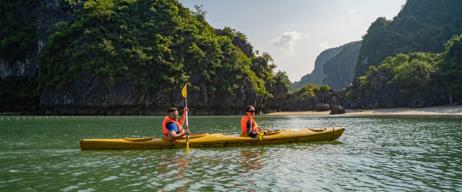 14:00:You return to your cabin for a short rest and prepare for kayaking activities in Trinh Nu Cave area.