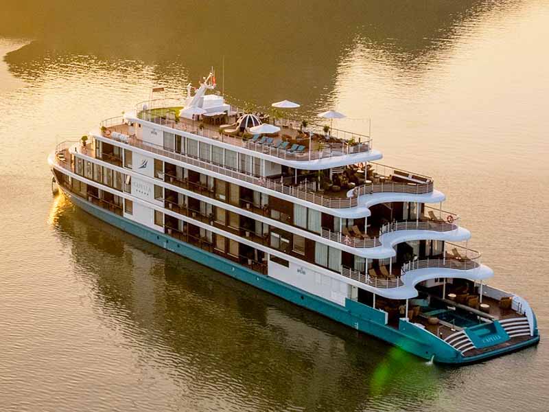15:15-17:00: Cruise anchors at frog Lagoon area for outdoor activities. Access to capella’s high – grade entertainment facilities for loads of fun water activities. You can choose to rejoice in infinity oasis pool and jacuzzi,experience the thrills with inflatable water slide,swim in the green emerald water,kayaking /try SUP around the beautiful landscape of Lan Ha Bay, or try a mini-Golf on the top deck.