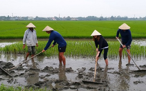 You start the day by cycling to the local farmer in Cam Thanh Ecological village. Here you are greeted by a local host and then you join with them how to grow wet rice with their family.