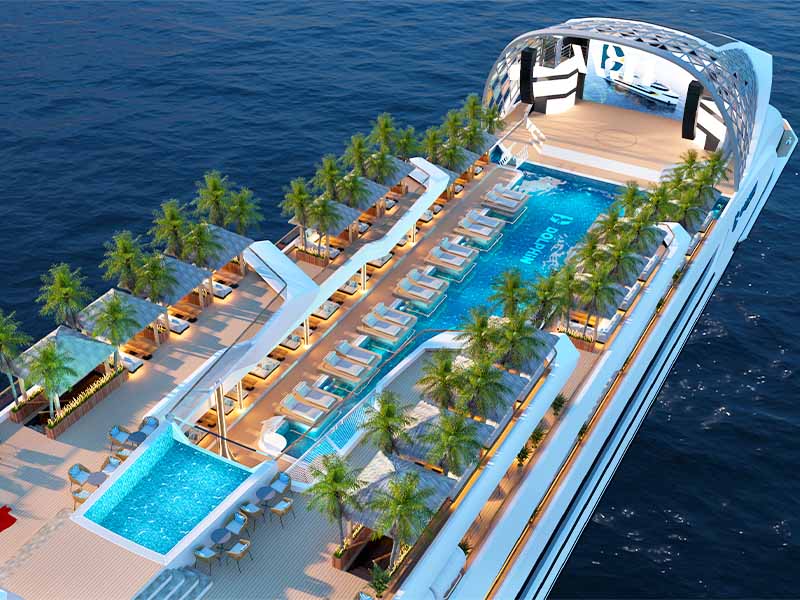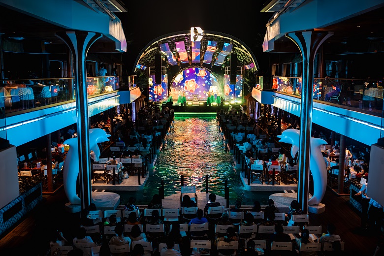 On the journey back to the port, guests can enjoy delicate snacks with romantic live music at sunset or relax in Vietnamʼs largest luxury pool.