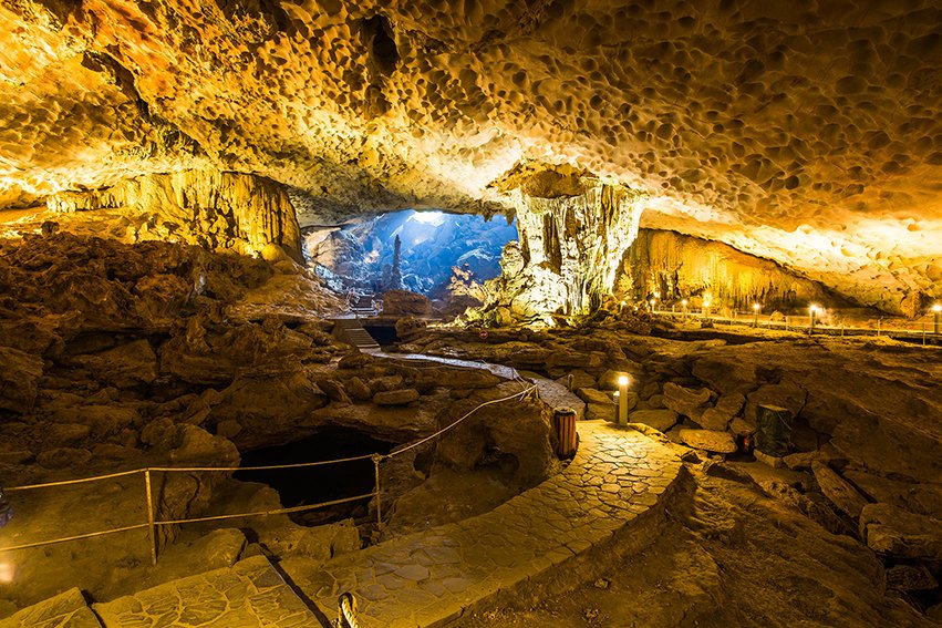 Arrive Surprise Cave, renowned for its thousands of stalactites and stalagmites.