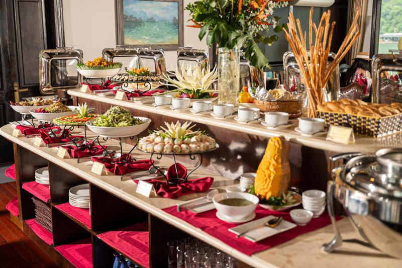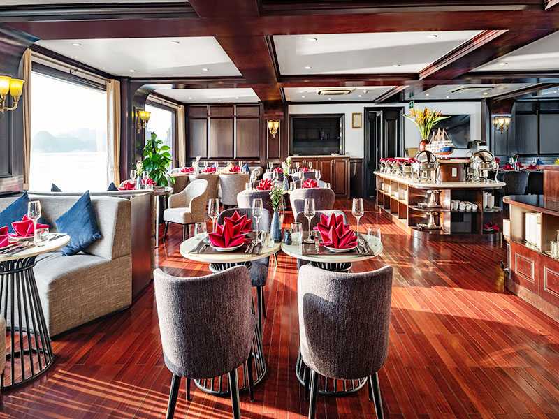 3:00-4:30: Kayaking and /or swimming at the Tra Bau area (featured in the movie “Kong Skull Island”) ,or unwind in the Jacuzzi located on the prow of the 3rd deck.