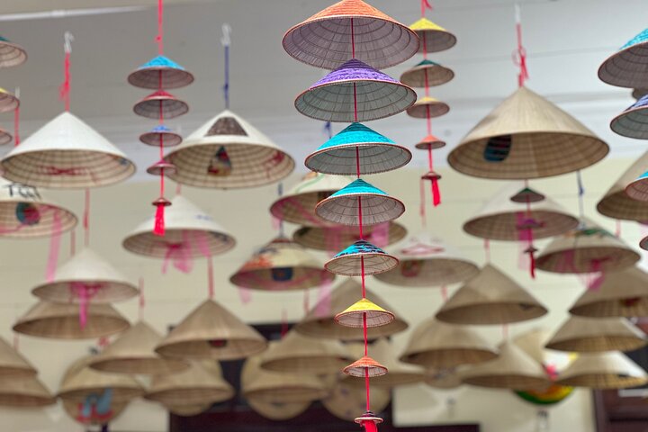 10:15. Leave for Chuong Village that has been well-known forr the craft of conical hat - making for over 300 years . Meet the local artisans and observe how conical hats are made . You will have a chance to draw by your own on hats than take home for souvenir