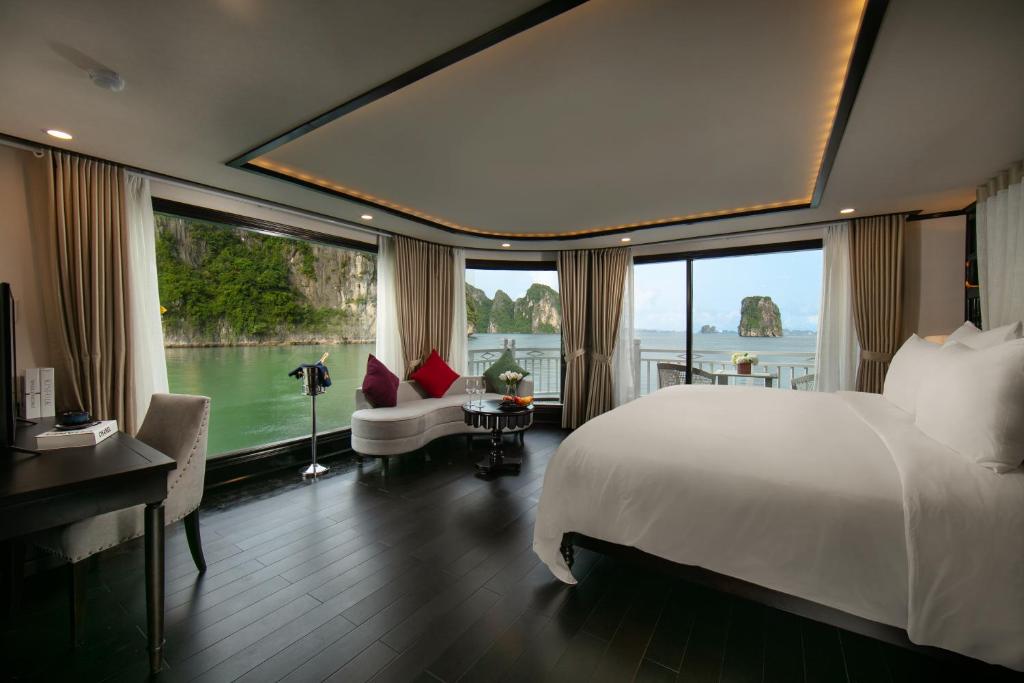 " times=""><strong>18:00 </strong>Enjoy Halong sunset canape with snacks are served before the main oarty as: Seasonal fresh fruits plate,Smoked duck breast, Ham and cheese canape, potatoes chips ,… </span></p>