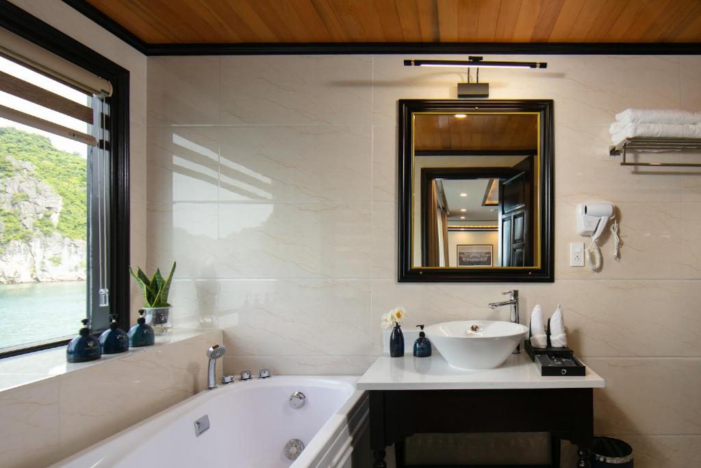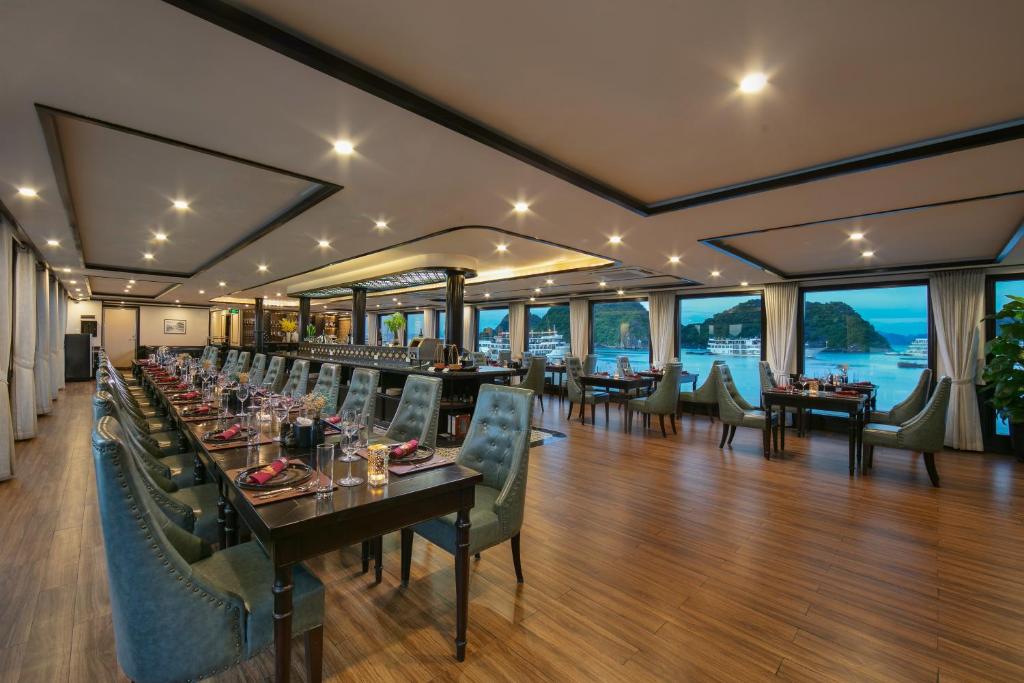 <p><strong>13:30</strong>: Enjoy a nice buffet lunch at our restaurant while the cruise goes ahead to Halong Bay.</p>
