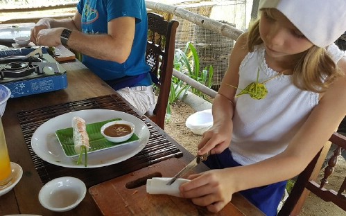 - To visit the Local Village, we take a row boat ride through the water coconut trees. We then walk through the gardens to our open-air cooking class overlooking the water coconut trees and river. Our chefs will show you how to make Vietnamese food while you enjoy the cool breeze and peaceful setting.