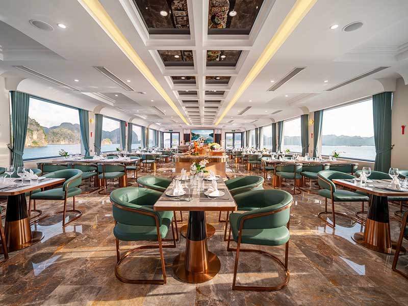 11:15: Enjoy a delightful lunch at the 5 – star restaurant on Leona Cruise as you glide past thousands of majestic limestone karsts in the heart of the World Heritage Site.