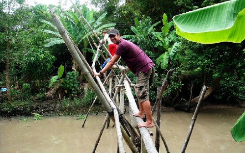 Have you ever tasted Vietnamese vermicelli soup? Well, now go and see how it is made. Then wander around the village and meet the friendly local people and experience how to pass a "Monkey bridge" which is built by only one stem of bamboo. Visit the orchard garden. Stop for lunch. Proceed to Chau Doc, continue the tour to visit Tra Su, getting to the wild birds Sanctuary, cruising smoothly with small boats to discover the arrays of splendid canals deep into the forest, watching storks, cranes and other tropical birds. Back to the Town, hotel check in. Overnight in Chau Doc.