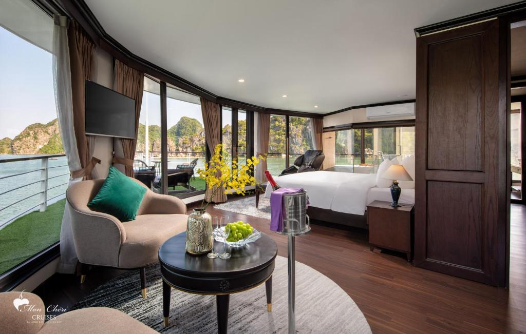 11:30 : The crew members of Mon Cheri Cruise will welcome you at No.34, Tuan Chau Marina, Quang Ninh