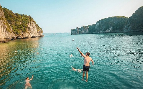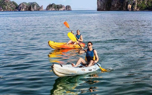 • 13:45: Kayaking to explore Van Boi Bay and visiting the local people who live in the floating village, followed by swimming at a pristine beach.
