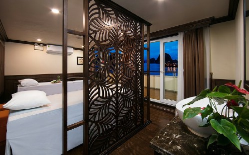 It is a perfect blend of the sophistication between the classic European form and the rustic essence of Vietnamese styling. Mon Chéri itself creates the difference with the tiny distinguished feature from its elegant design, deluxe restaurant; the menu is up with careful consideration, 18 spacious cabins with private balcony bound to the spectacular view of Lan Ha Bay and emerald ocean. Deeply immerse in the charm of the traditional music tone while enjoying dinner at the restaurant or find a place on the sundeck with a cocktail to taste the sweetness of peace in the evening is seem to be the best way to reward yourself the experience exquisite, the journey flawless.