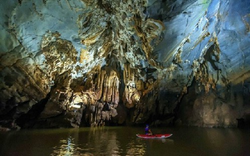 - 13:30: After lunch, We visit Phong Nha caves (50 km about the city, 45 minutes driving). After 25 minutes on boat, we will arrive at Phong Nha cave, take a couple hours to see the cave. This cave is called as water cave, is famous for its rock formation which has been given names such as the "Lion", the "Fairy Caves", the "Royal Court", and the "Buddha".
