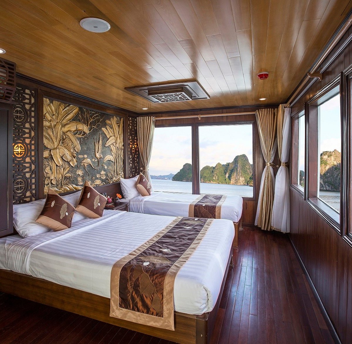 12:30: Arrive in uor office at Hon Gai pier,you will have a bit time to relax. Wait for our captain to finish the registration and transfer by tender to our boat.