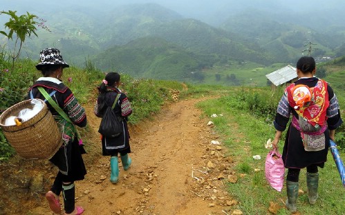 09:00 Our tour guide will pick you up at your hotel, then we start 3km of walking down to the south east of Sapa along the side of Muong Hoa valley to Y Linh Ho village of the Black H’mong - visit local school and local houses then continue 4km of trekking down to Lao Chai village of the H’mong.