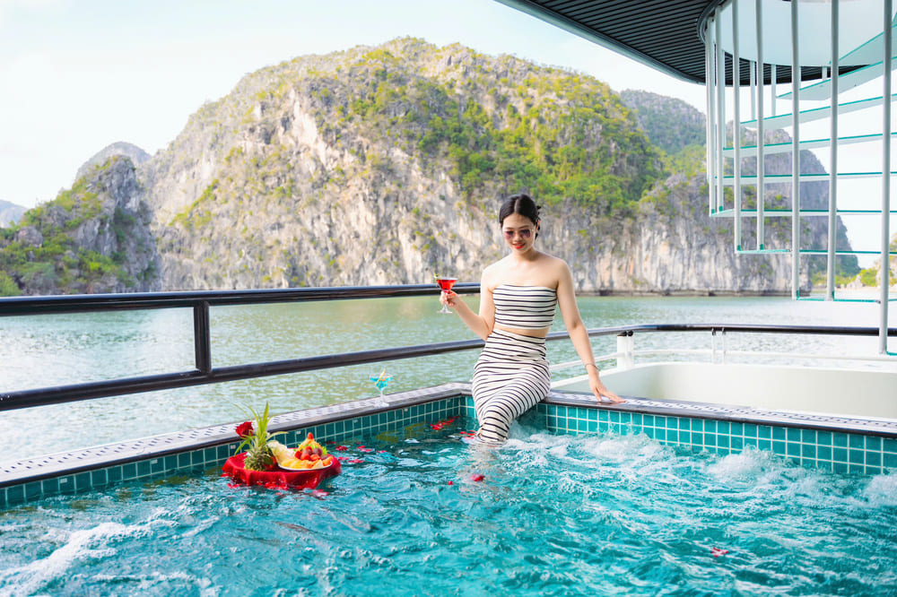 Relish a delicious buffet lunch featuring fresh seafood, Vietnamese specialties, and international dishes. Dine while cruising past landmarks like Fighting Cock Islet and Incense Burner Rock.