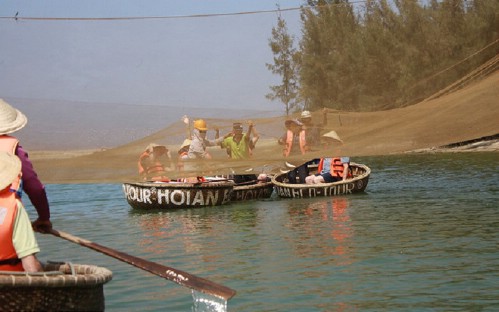 - Board our boat and cruise to the mouth of the river where it meets the Cua Dai Sea