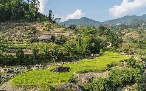 Early breakfast at homestay, at 08:00 AM, we start our morning trek from village to village. We pass through paddy field s and waterfalls. Then, we walk 30 minutes down to the valley to the Lung Tam commune (altitude difference of roughly 400 m ). Visit the hemp shop in the vilage before having lunch at a local stall.